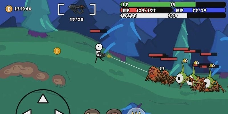 1、使用左下角按键控制移动,通过虚拟摇杆精确控制角色移动方向。
