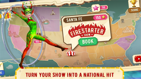 马戏团升级与巡演:通过演出赚取金币和声望后,可升级马戏团设施,解锁更多高难度特技、创意表演形式以及限定服装道具。随着马戏团发展,还能解锁新城市开启巡演,应对不同地区观众的偏好,争夺五星好评,逐步提升马戏团的知名度。