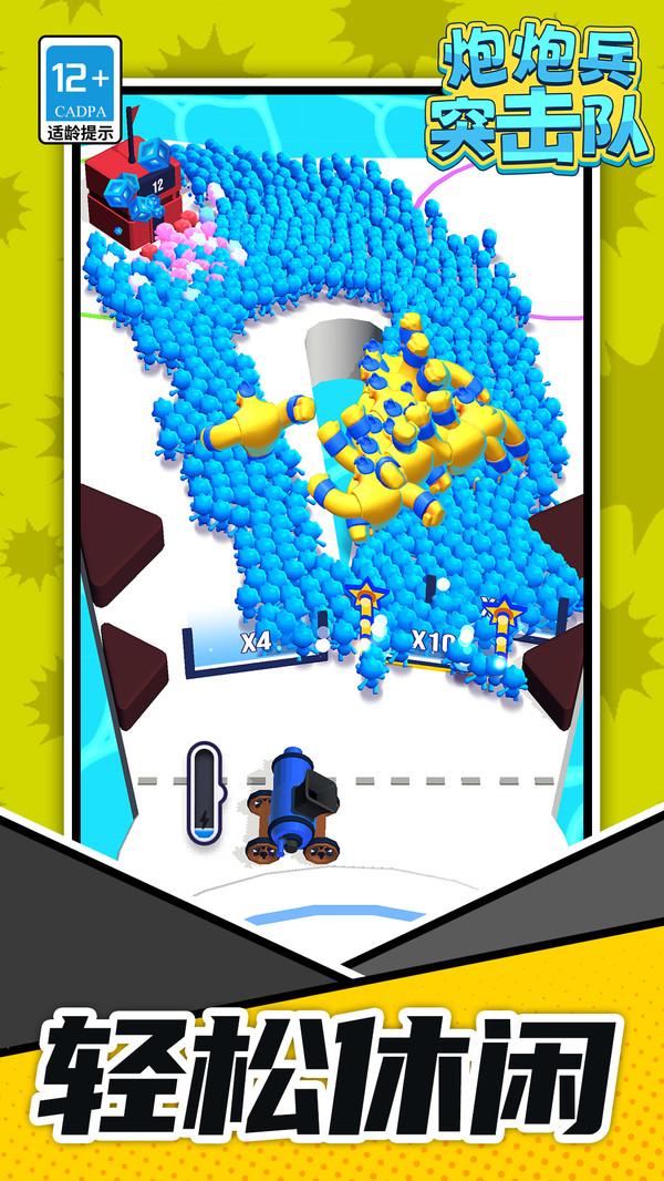 炮炮兵突击队是一款趣味十足的冒险闯关休闲游戏,核心玩法围绕“集结兵力、攻占塔楼”展开。玩家将操控小兵队伍发起冲锋,目标是拿下敌人的塔楼据点,同时掠夺人口资源,持续扩充兵力规模。游戏中需注意避开红色大门等危险陷阱,团结所有小兵全力冲刺,逐一攻克眼前的关卡。选择正确的前进路线,能让兵力实现翻倍增长,助力更轻松闯关!