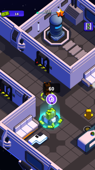 4.如下图所示,每隔一段时间就会有免费的钞票能够领取,玩家需要合理使用钞票来解锁更多房间,招待更多客人。