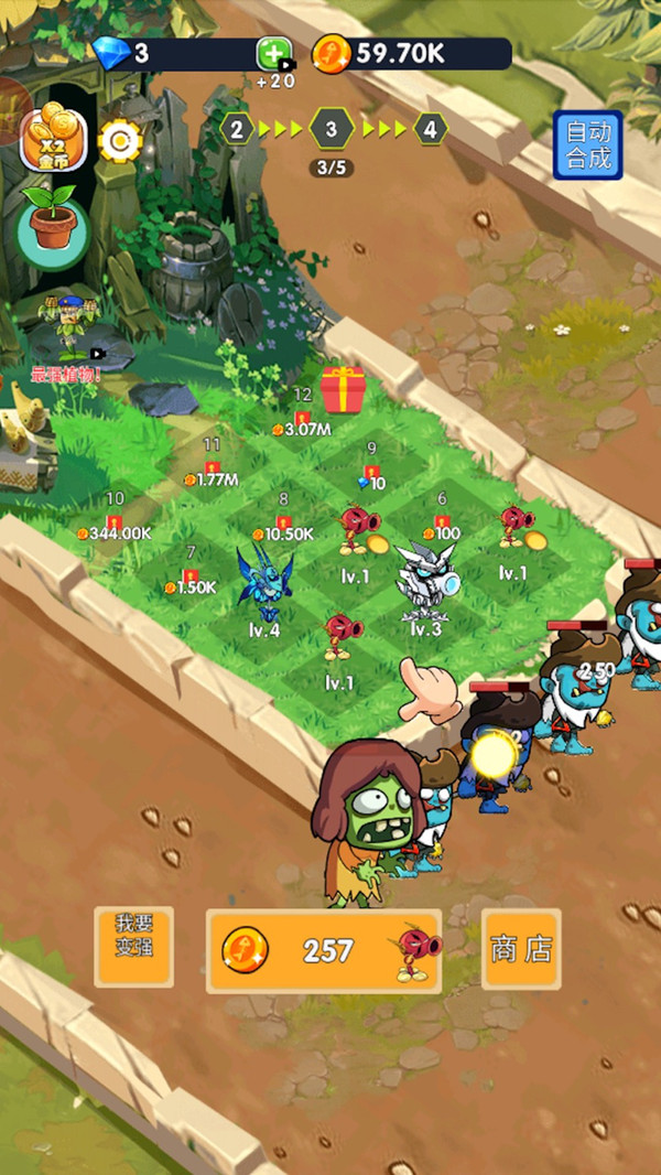 2、玩家可以在游戏里轻松体验到各种模式,还有更多不一样的精彩内容,包括使用钻石道具用更加强力的作物击退敌人。