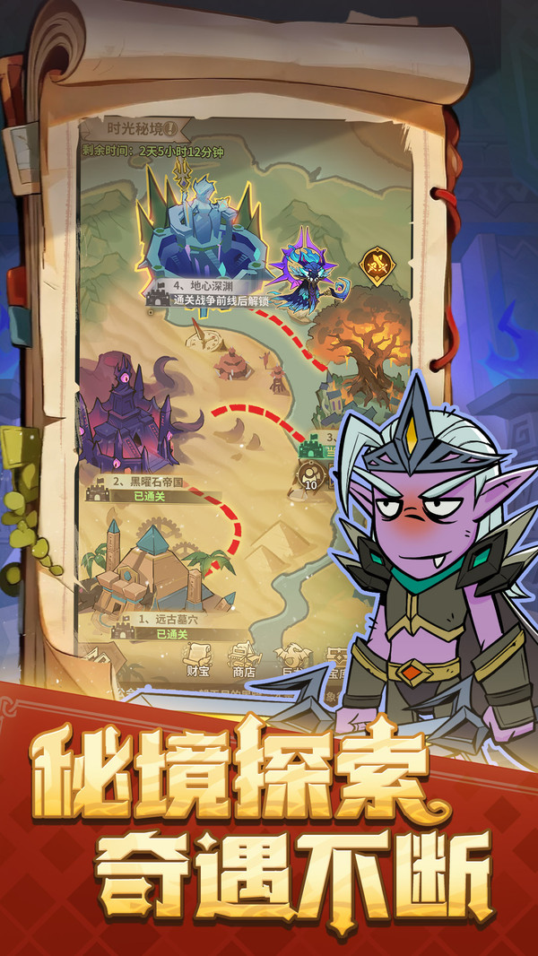 2、开放世界探索:隐藏宝藏与资源点遍布地图,自由探索驱动战力成长,主线剧情穿插限时活动,目标感强。