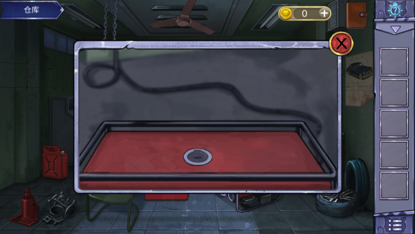 4.现在你需要帮助角色行这个仓库中出现,点击面前的各种道具,利用道具来砸开门帘成功出去吧!