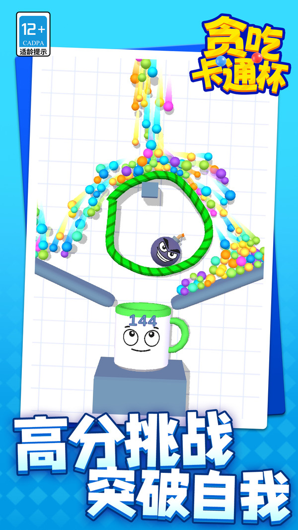 贪吃卡通杯是一款创意满满的轻松解压休闲手游,玩起来治愈又上头!在色彩明快的卡通世界里,你需要仔细观察可爱大球的运动轨迹,用有限长度的线条绘制封闭框体将其包围。随着线框不断收缩,大球会被挤压分解成无数小球,如瀑布般汇入下方的卡通杯中。收集的小球越多,就能越快推动进度条,解锁更多丰厚奖励,全程操作简单、视觉治愈,是闲暇时光解压的绝佳选择!