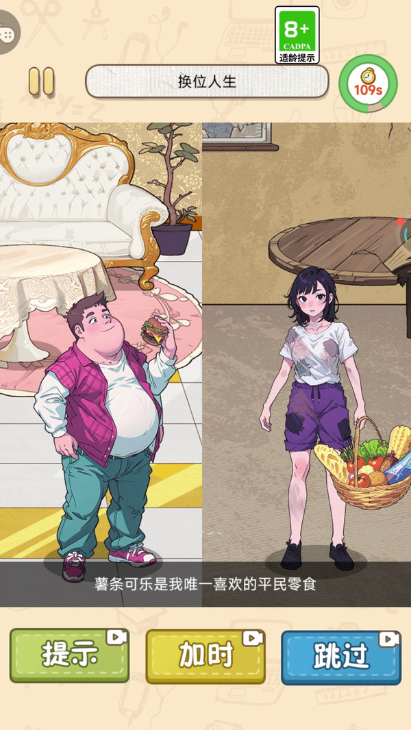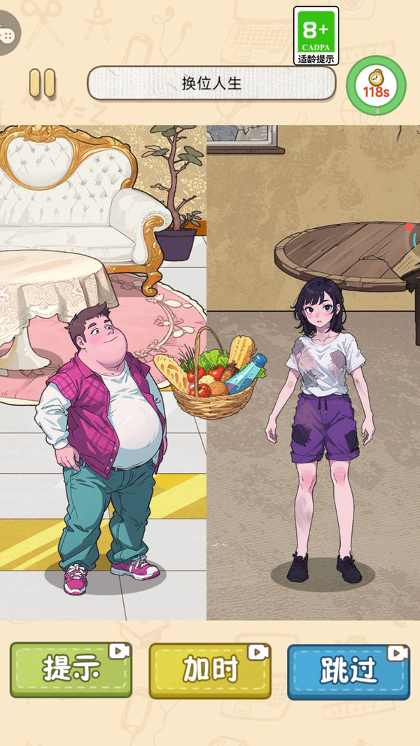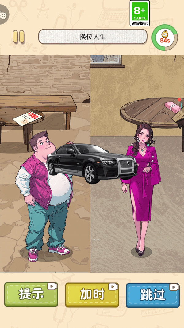 有能耐就来是一款带倒计时机制的限时剧情解谜游戏!玩家需要在规定时间内,仔细观察左右两侧角色的境遇与对话,通过拖拽物品或选择对应选项,将资源精准分配给符合其人生需求的角色。完成所有正确分配,就能推动剧情发展、顺利通关。游戏玩法丰富多样,既有烧脑的脑筋急转弯,也有考验观察力的找茬挑战,还有需拖拽屏幕元素才能过关的趣味玩法,整体操作简单又充满乐趣,快来挑战一下你的解谜能力吧!