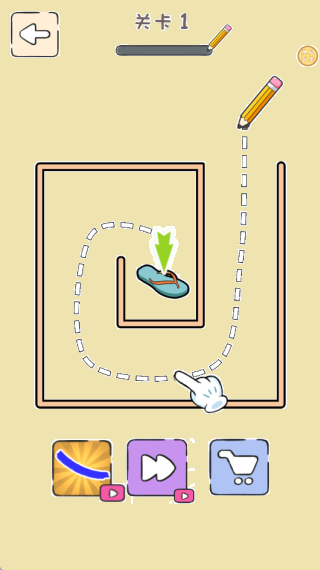 3.如下图所示,点击脏衣桶之后将会进入到迷宫画线挑战中。跟随虚线画出轨迹来获取迷宫中央的拖鞋吧!