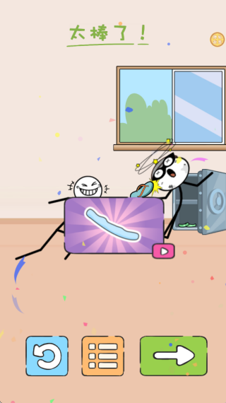 4.火柴人将会使用获取的拖鞋来对付小偷,本关卡即可成功闯关。点击右下的箭头按钮将可以进入下一个关卡。