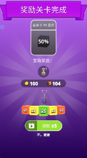 4、第一关顺利完成,你获得了金币奖励,可以用来升级铲子。