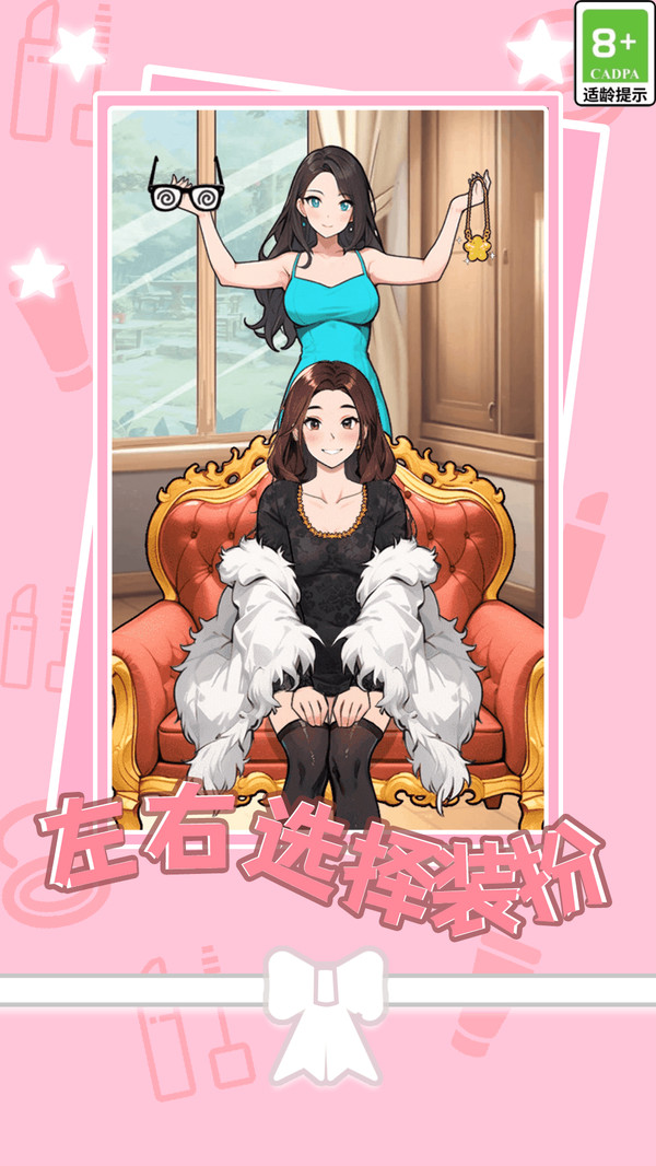 2、左右两边的服装与配饰自由切换,这会带来全新主题风格尝试不一样的风格,还能学习到不一样的搭配技巧。