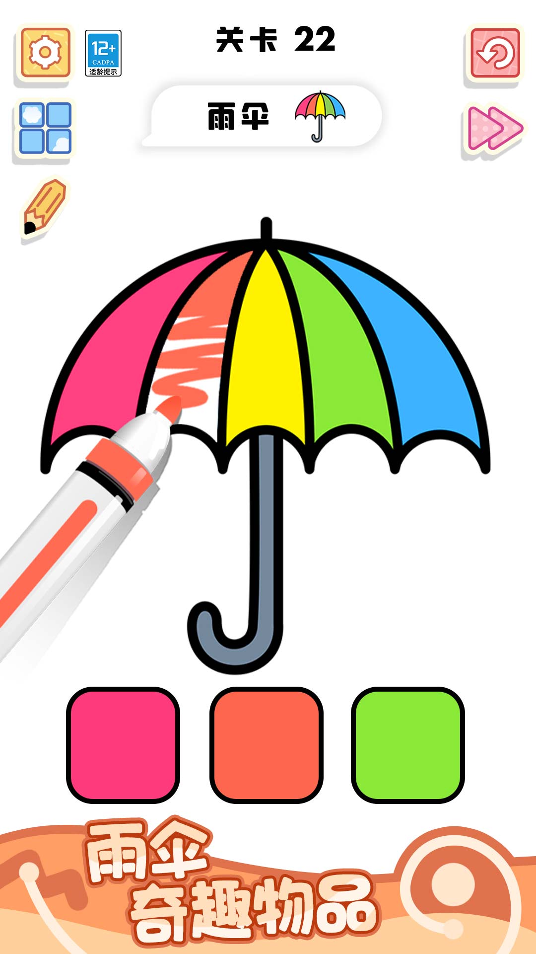 1.以“观察—匹配—填色”为核心机制,将色彩辨识与手眼协调融于简洁流程,形成独有闯关体验。