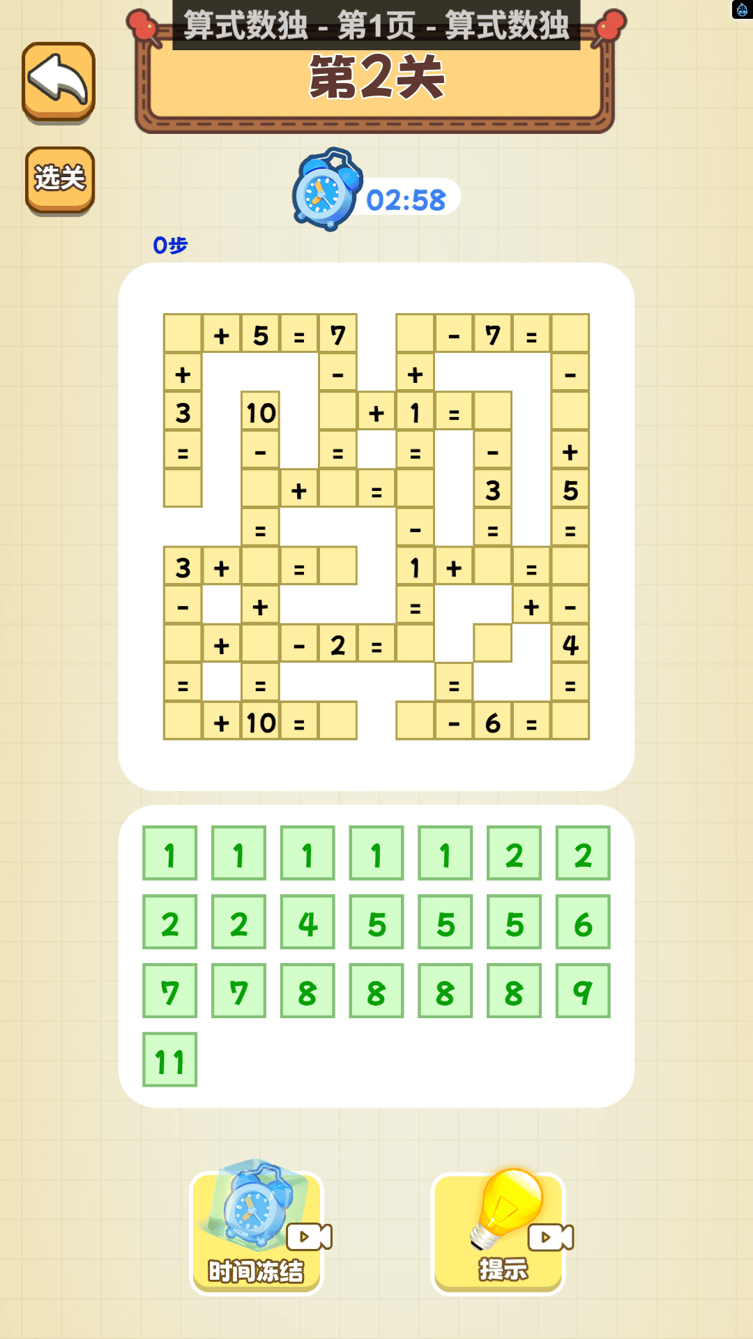 2、在算式数独关卡中,需结合方格内的等式要求,调整数字位置与合并顺序,确保每行、每列等式成立,同时完成数字升级。
