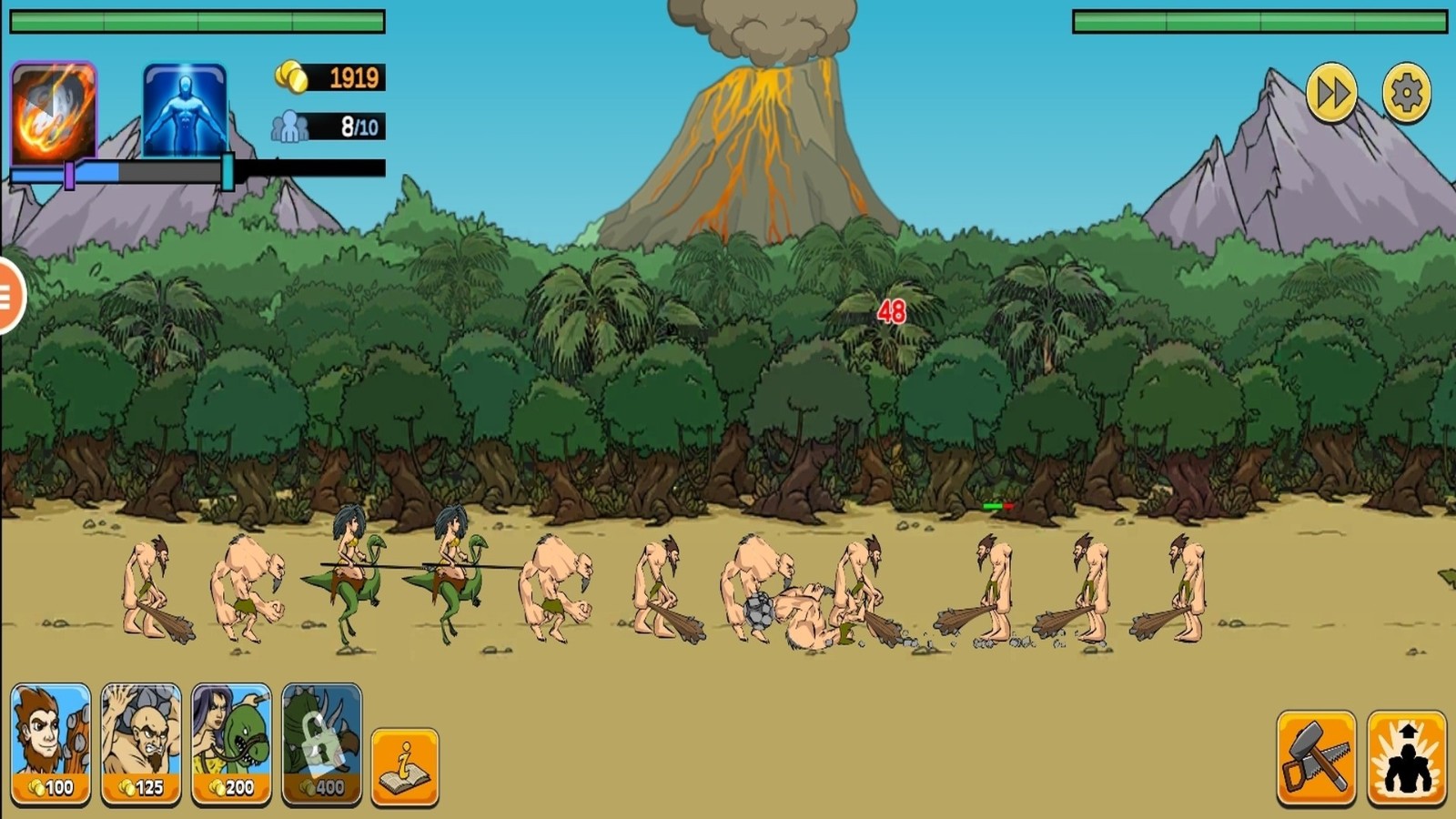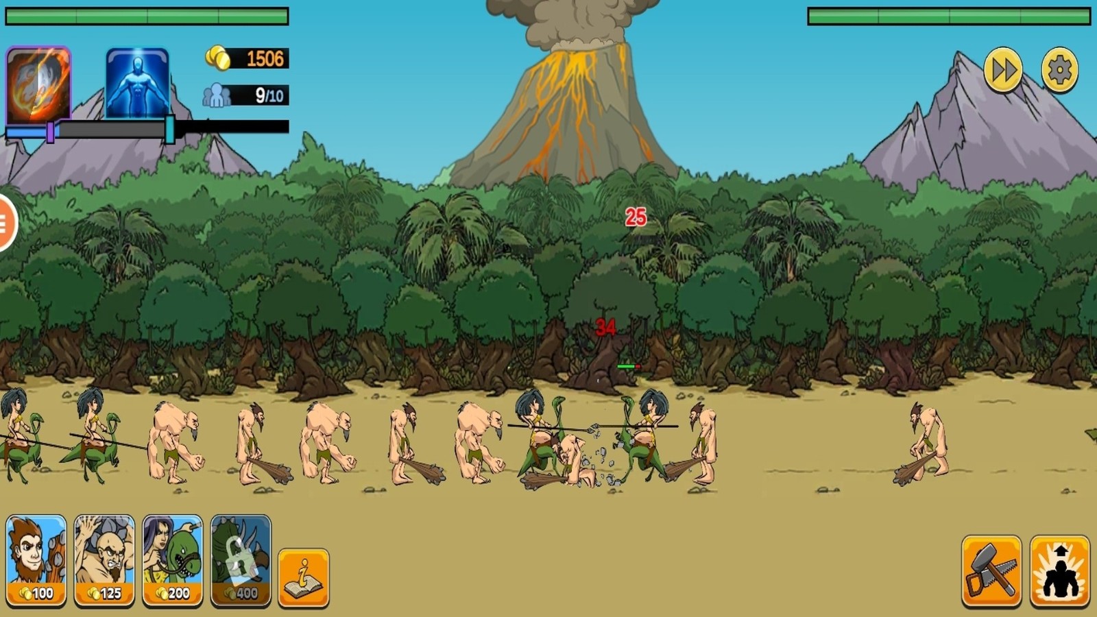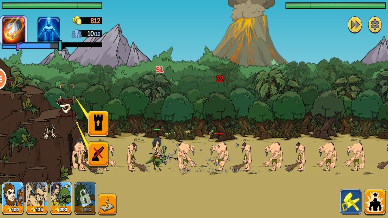 1.消耗金币召唤不同兵种,兵种类型随时代解锁,涵盖近战、远程及特殊功能单位,形成多元组合。