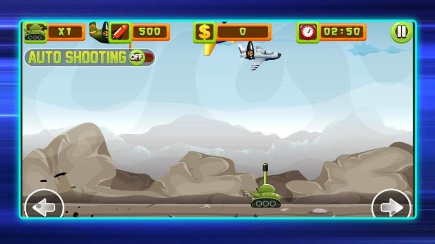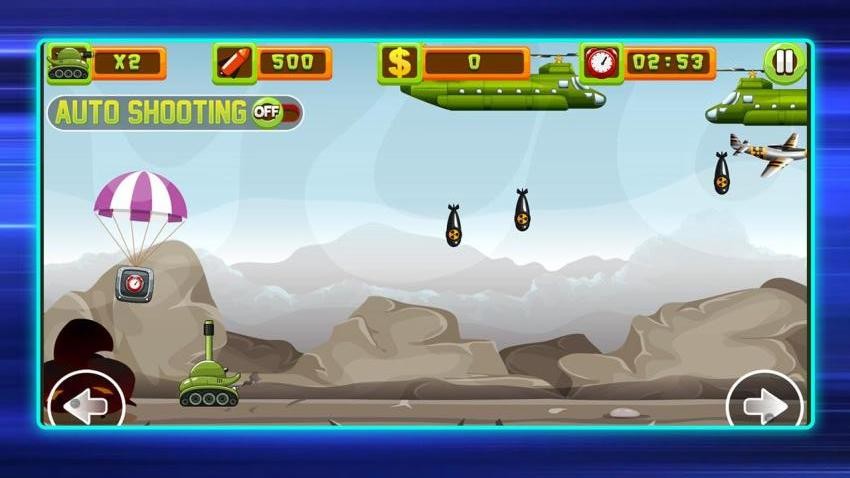 2、使用屏幕上的虚拟摇杆控制坦克移动,灵活躲避从空中掉落的炮弹。