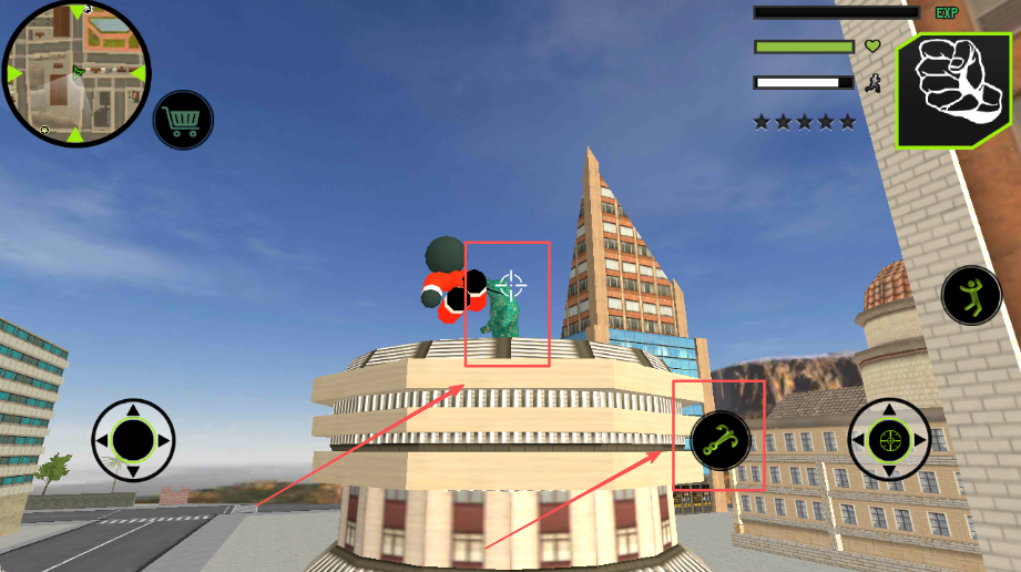 2、控制角色移动探索城市,通过虚拟摇杆控制圣诞老人移动。