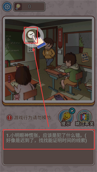 《最强班主任2》是一款以校园生活为舞台的悬疑解谜手机游戏。在游戏中,玩家将化身为一位思维敏捷的班主任,面对学生们的种种棘手问题和校园内的神秘谜题,引导故事情节向前发展。本游戏巧妙地结合了引人入胜的剧情与充满挑战性的关卡设计,每一关都考验玩家的智慧、策略和观察能力,以解开重重难题。细腻的画面和生动的人物对白,进一步提升了玩家的沉浸感,带来一场身临其境的游戏体验。
