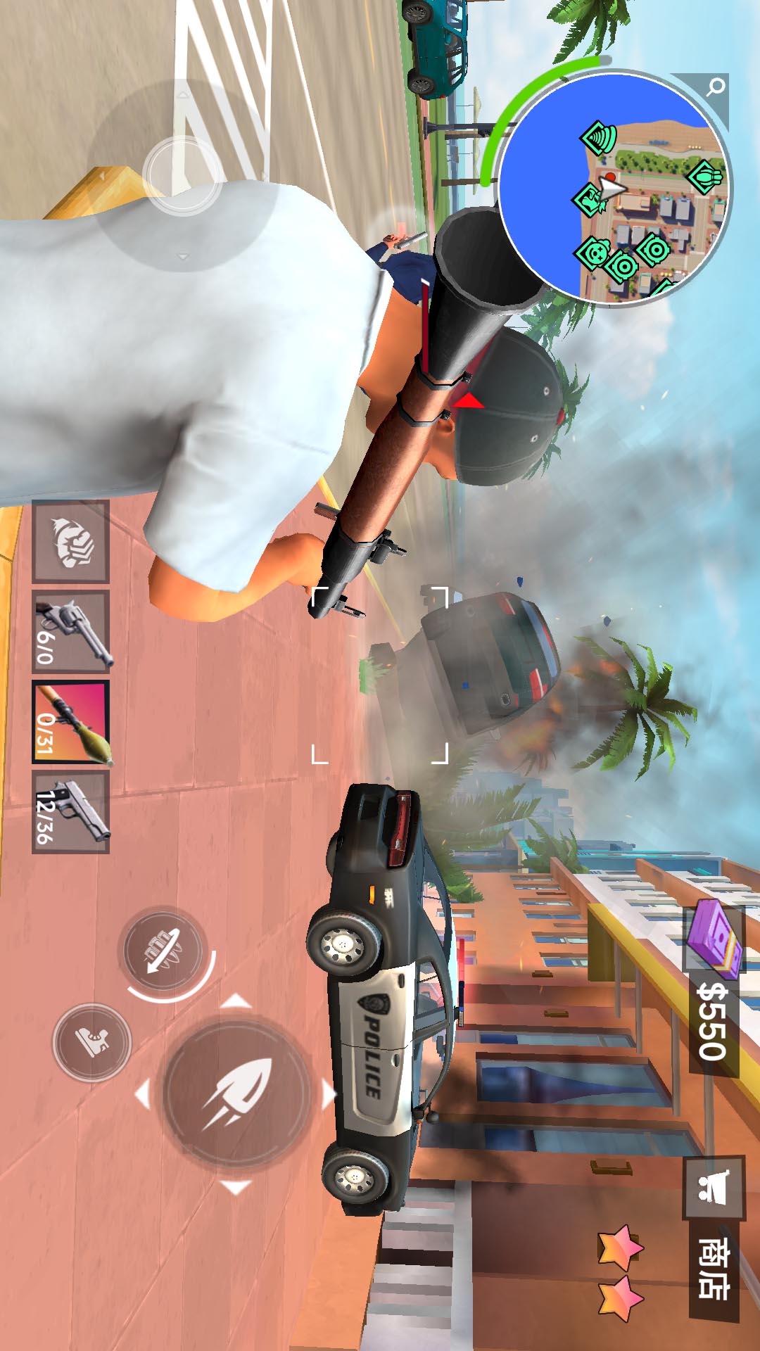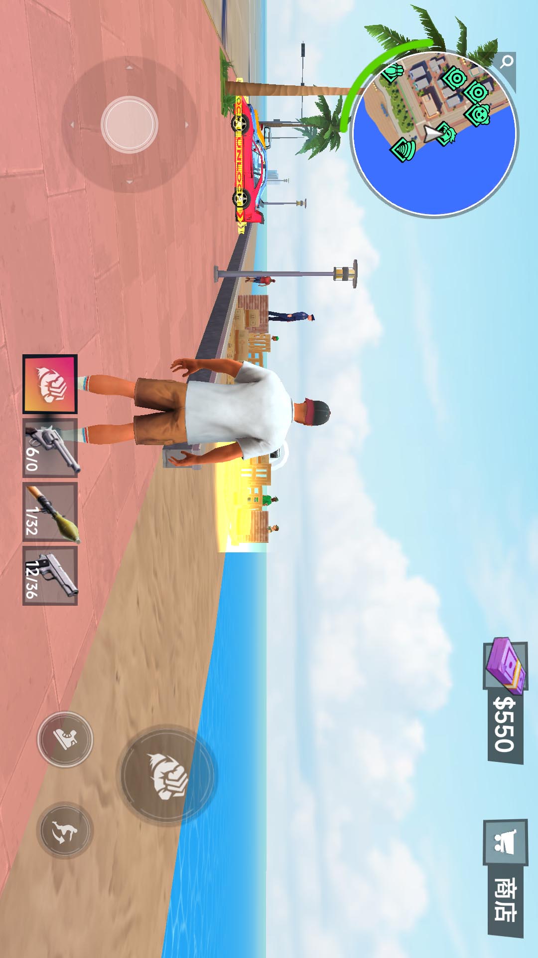 1、进入游戏后操控主角在都市街道中穿梭,捡取沿途武器装备,开启自由冒险之旅,承接各类任务。