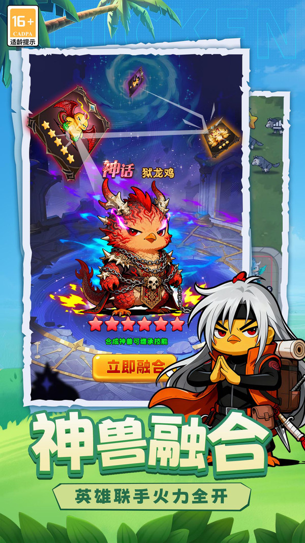 脑洞大开的图腾神鸡,不是菜鸡,也不是弱鸡,每只神鸡都特点鲜明,不仅皮肤酷炫,还有专属的超强绝技,可解锁激活各种武器,穿戴装备,镶嵌宝石,提升天赋,哪怕是再平庸的英雄战队也能抱着鸡的大腿,从平凡到非凡,主打一个无敌碾压!