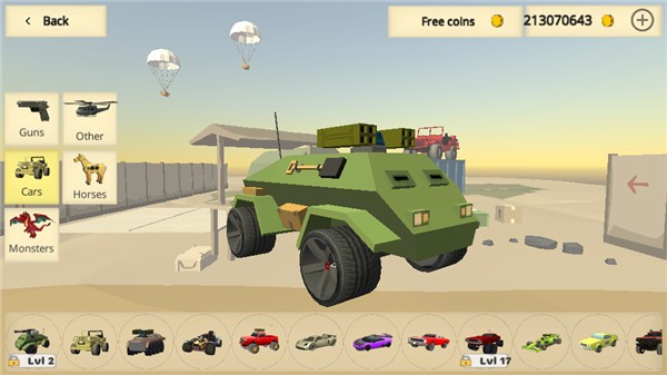丰富成长与定制内容:游戏设有近战三杀、无伤害夺冠等特色成就,完成后可获取限定奖励,部分成就还需在特定天气或模式下触发。此外支持定制角色外观与装备风格,玩家还能用金币购买枪械、坐骑甚至直升机、恐龙等道具,塑造专属游戏形象。