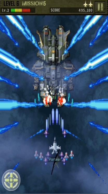 1、操控战机躲避密集弹幕,精准射击敌机和BOSS,积累分数与资源。