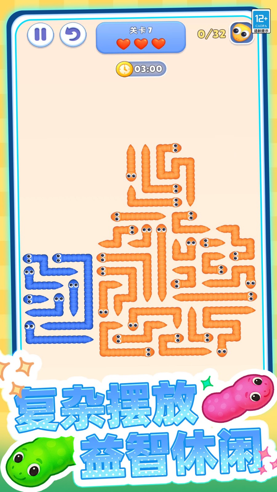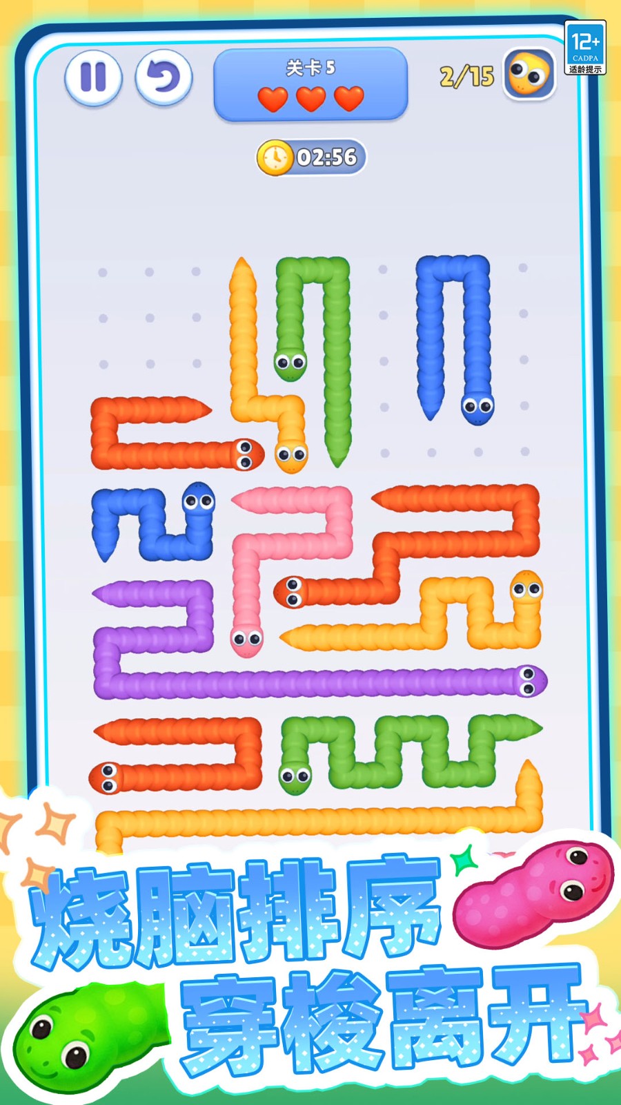 1.是一款以空间逻辑为核心的全新益智闯关游戏。它摒弃了传统谜题的数字与符号,将挑战具象为层层交叠的彩色蛇形形象。