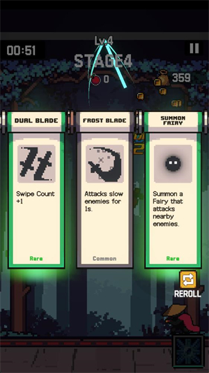 3、当切开水果后,玩家会获得经验,经验满后可以升级获得技能,玩家可以选择一个来强化自己。
