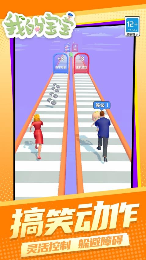 我的宝宝是一款精彩的休闲模拟游戏,玩家将在这里体验到独特的跑酷模式,通过左右移动的方式来进行闯关,还可以使用很多的道具,考验你的反应能力,喜欢的话快来下载进行体验吧!
