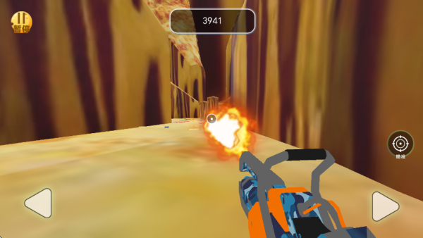 小编选择了普通模式,玩家需要使用左右两侧的方向键按钮帮助主角调整身位,躲避障碍物。还能使用武器射击障碍物。