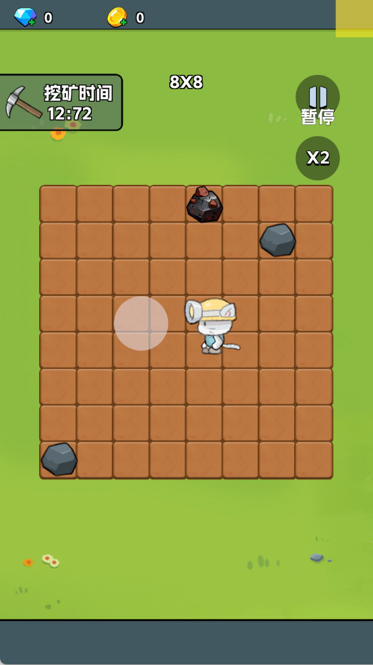 1、直接点击着角色进入到格子中,开启你的挖矿的挑战和操作吧。