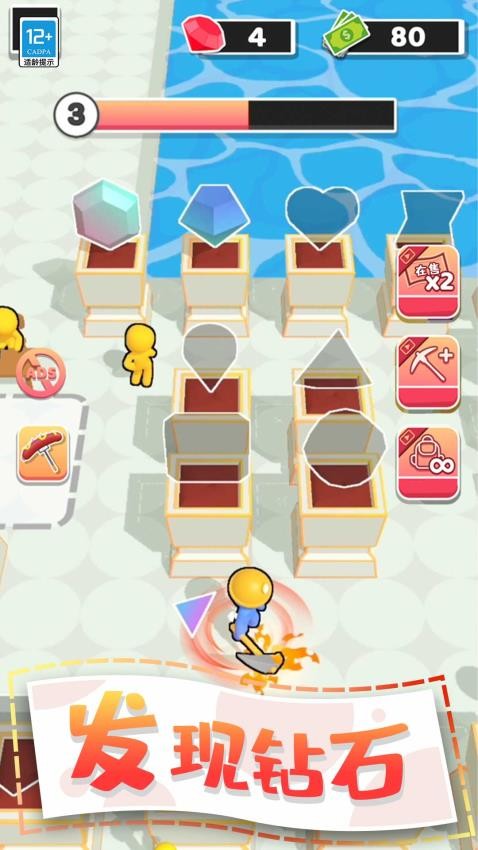 1、火速挖矿获取资源奖励,甚至挖掘就有机会发现宝石和黄金矿脉,这会带来极其丰富的金钱和钻石奖励。
