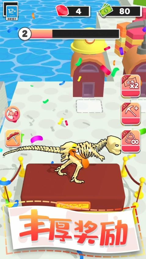 1、控制角色深入进行挖掘,还有一定的几率可以挖取一些稀有的宝物,甚至是恐龙化石。