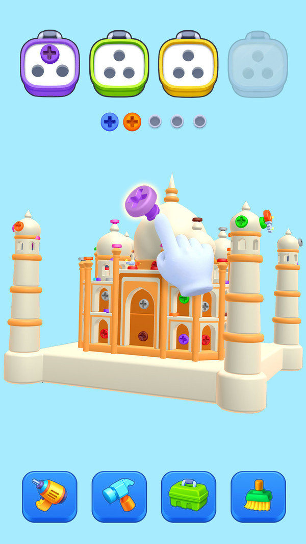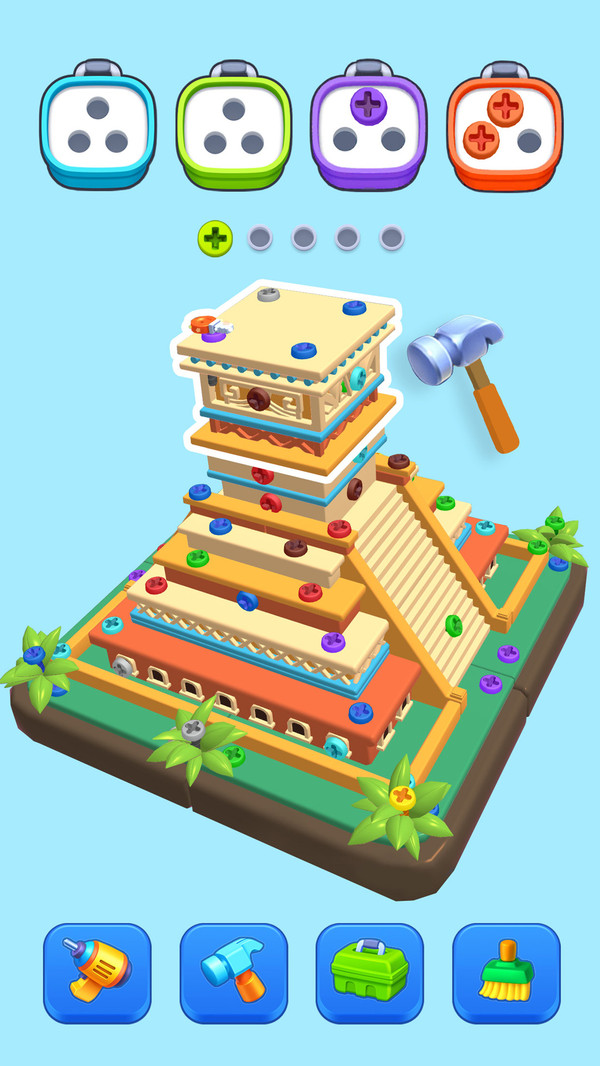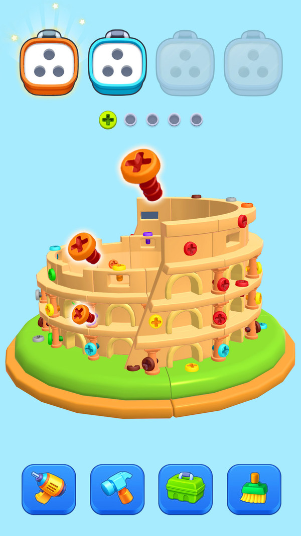 - 脑力狂欢模式:既要规划螺丝颜色优先级,又需预判孔位剩余空间
