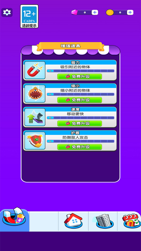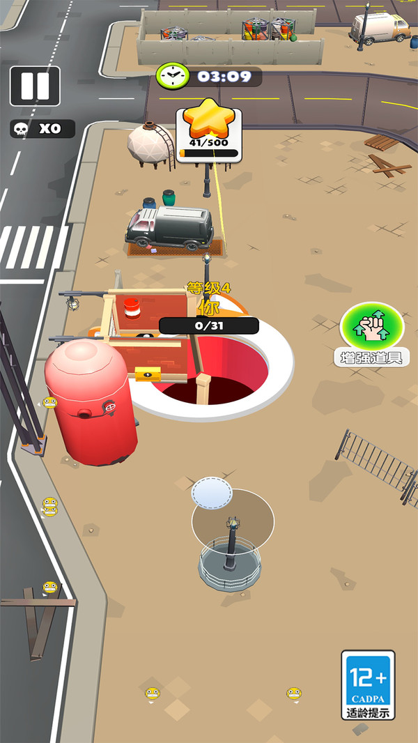 吞噬大作战是一款魔性十足的竞技手游!你将操控迷你黑洞在场景中自由穿梭,不断吞噬比自己体型小的物体,一步步积累能量壮大自身。随着体积持续增长,你能解锁车辆、建筑等更大规模的吞噬目标,还能与其他玩家操控的黑洞正面交锋,展开激烈对决。全程需要灵活调整走位躲避强敌,精准筛选吞噬目标快速发育,最终成长为场景内的终极黑洞。