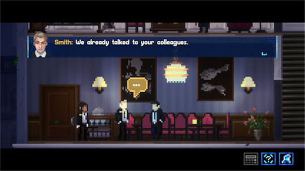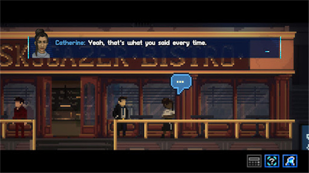 像素光影美学:游戏采用复古像素搭配动态光影的设计,打造出独特的科幻黑色电影氛围。星际都市里雨水打湿的路面反射霓虹、新闻荧光屏的微光等细节,让场景极具沉浸感;角色造型也贴合人设,比如主角尼尔・康拉德身着干练风衣,尽显疲惫与坚毅,仅靠像素造型就能传递鲜明性格,再搭配全中文配音独白,进一步强化角色魅力。