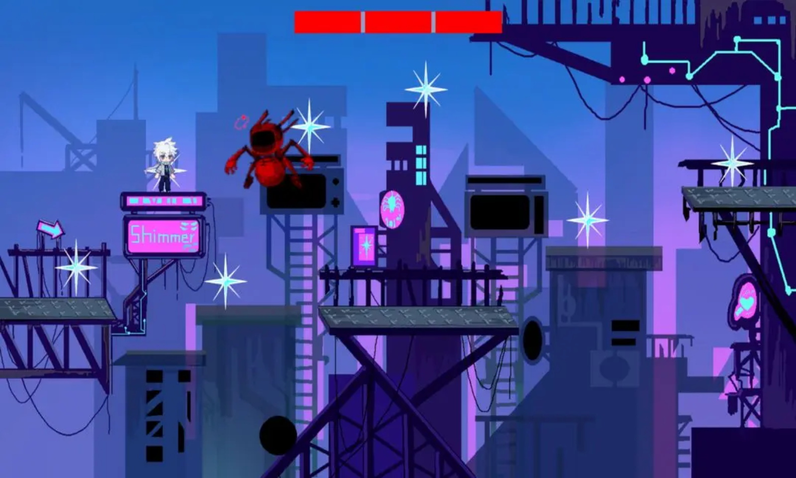 Shimmer是一款横板平台解谜游戏。游戏操作考验精准度,同时需要跳脱常规的思维去解决谜题,从简单图层切换到多层联动解谜,每一次发现漏洞都像在数字牢笼中开辟新空间。