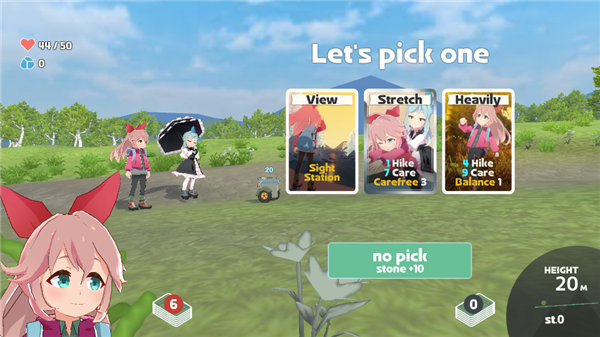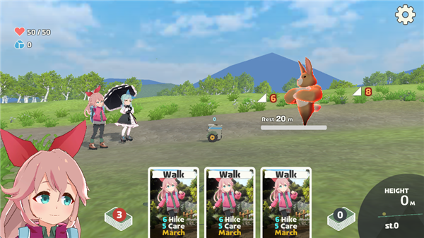 新手起步:建议先挑战浅间山,其地形平缓、随机事件少,适合熟悉玩法。初期优先用攀爬卡推进进度,体力低于 30% 时及时用进食卡恢复,同时重点收集石头资源,用于制作防水袋这类关键初始装备。