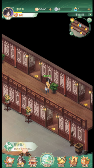 3、在惊心动魄的冒险之外,你可以在故乡经营一家专属客栈。通过闯荡结识的各路豪杰(如酒剑仙)可聘为跑堂,接待形形色色的客人。