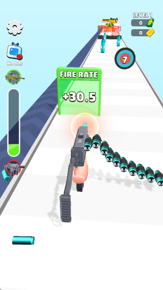 3.终点设密集障碍物群,需凭借强化后的子弹击碎目标,击碎数量关联钞票收益,用于解锁新枪械。