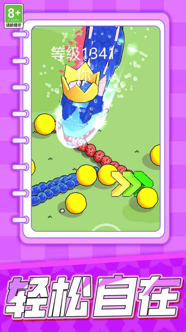 1、化身灵动小蛇以吞食食物不断变长为核心,在广阔地图中积累体型优势,朝着称霸游戏世界的目标迈进。