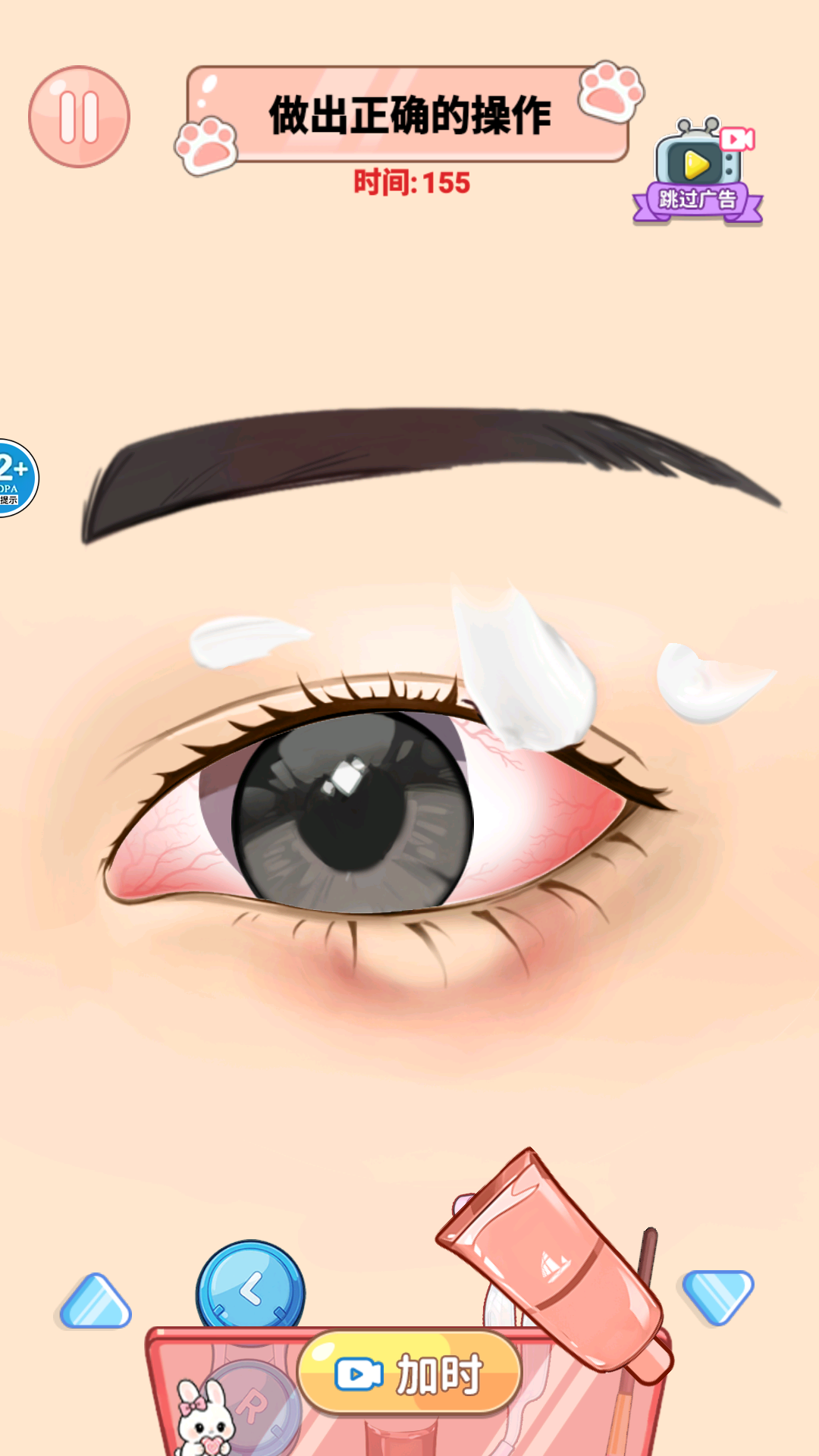 2、关卡难度逐步提升,从基础清洁到复杂护理场景递进,眼部清洁需求更具挑战性,引导玩家逐步精进操作技巧。