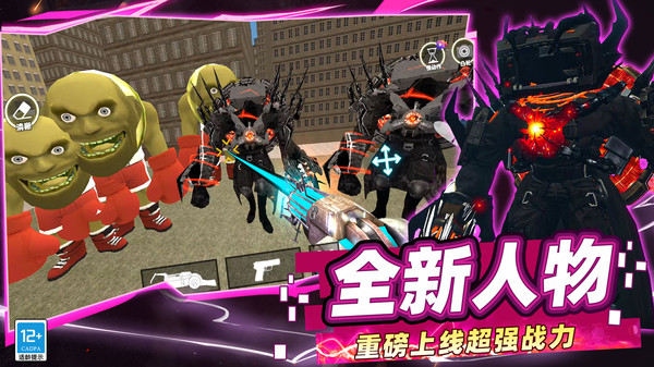 2、监控人阵营科研能力突出,可解锁反寄生枪、激光炮等专属武器,马桶人则以多样变种形态带来差异化对战体验。