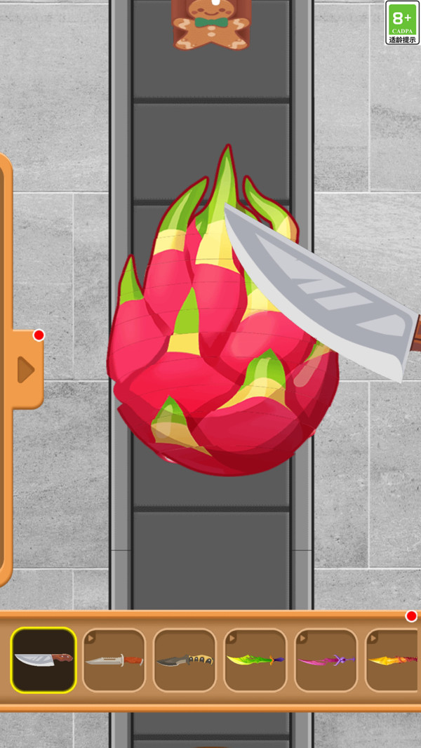 游戏界面显示食物,玩家可以控制刀具快速切割当前的食物
