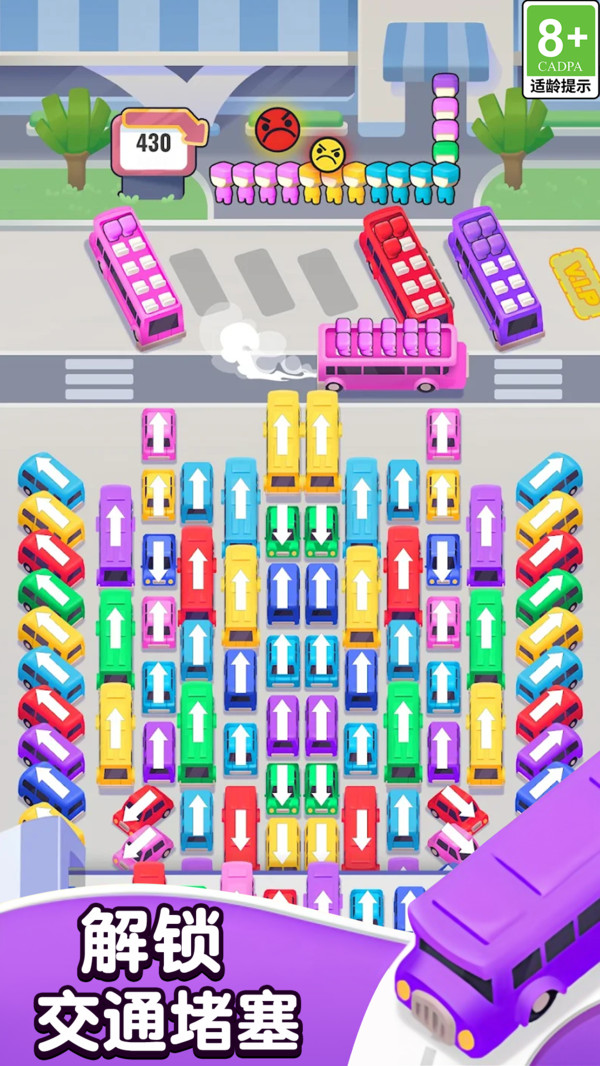1、停车场仔细观察控制车辆挪动,疏散全部汽车才能顺利完成关卡模式收获奖励,整个过程特别考验技巧。