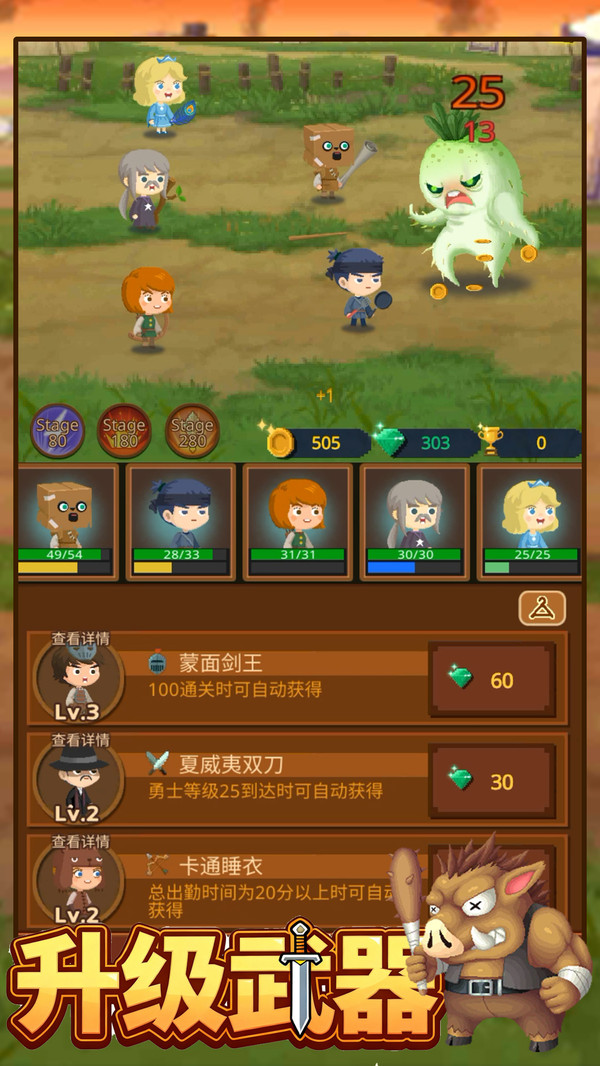 1、设计了丰富的勇者角色,还有不同的外观造型,增强游戏的欣赏性。