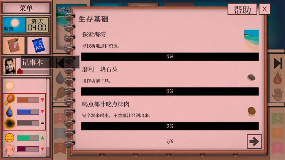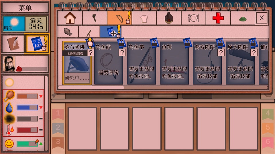 复杂健康系统:身体状态会遭遇晒伤、擦伤、骨折、动物咬伤等多种问题,还可能因细菌或寄生虫引发发烧、腹泻等病症。玩家需利用特定植物治疗,比如蜘蛛兰碾碎后加开水可制成抗生素汤,芦荟能合成芦荟膏加速伤口愈合。同时游戏还加入心理状态模拟,玩家会面临无聊、焦虑、抑郁等情绪,可通过和动物互动、开展趣味活动等缓解。