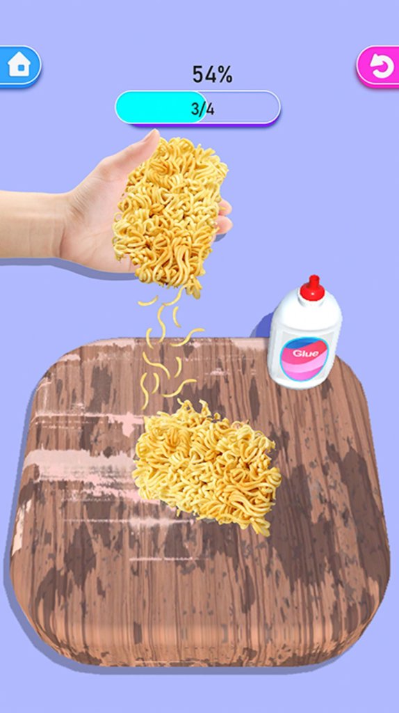 游戏的物理效果表现尤为出色,当玩家将方便面压碎填补缺口时,可以看到细腻的面渣飞溅效果;使用胶水时,液体的流动和凝固过程都栩栩如生。这些细节处理让整个修复过程充满真实感,也增加了游戏的趣味性。此外,游戏还设置了创意工坊,玩家可以分享自己的修复作品,或者挑战其他玩家设计的特殊关卡。