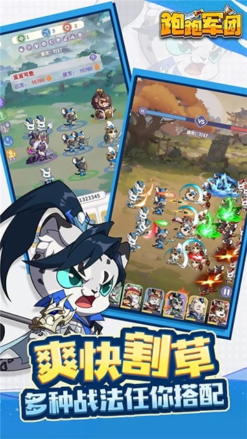 跑跑军团是一款三国题材策略卡牌手游,把扭蛋召唤、合成升级和随机 BUFF 等玩法相融合,搭配 Q 萌的卡通动物画风,以快节奏战斗和丰富的策略性吸引玩家。