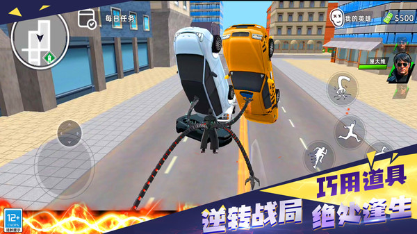 城市英雄冲突是一款创意满满的移动休闲战斗冒险手游!你将化身章鱼博士,踏入秩序崩坏的现代都市,肩负起守护城市的使命。操作简单易上手,左侧虚拟摇杆控制移动方向,点击右侧技能按键就能操控机械触手,对嚣张匪徒发起凌厉攻击。战斗中需警惕匪徒武器袭击,一旦生命值耗尽任务便会失败,还得直面阶段性强力BOSS的挑战。完成剧情任务可收集珍稀资源,用来强化机械触手的各项能力,一步步成长为独当一面的城市守护者!