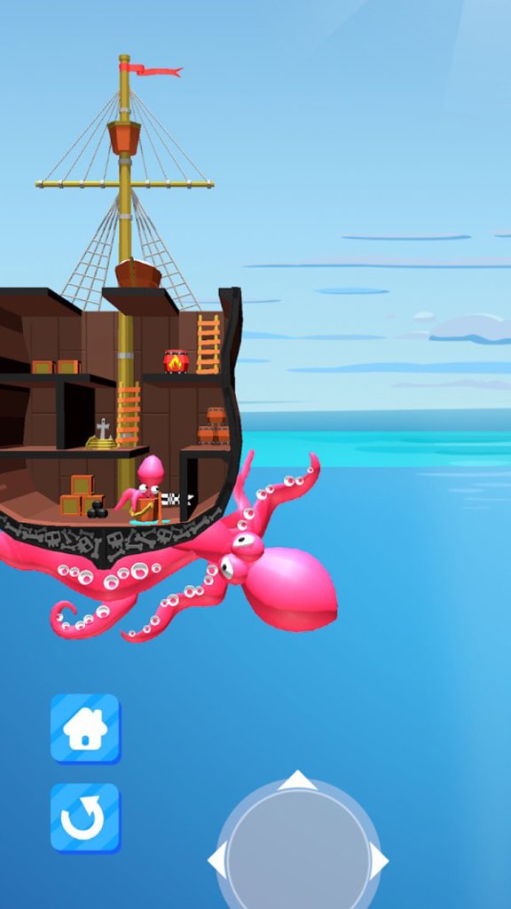 游戏的画质简约而不失精致,采用清新明快的色彩搭配,营造出轻松愉悦的视觉体验。你将变身成为一只可爱的八爪鱼海怪,在充满挑战的海域中展开冒险。