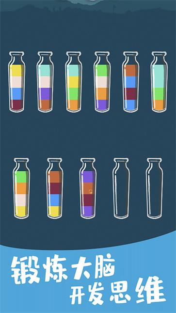 游戏遵循严格的色彩匹配规则,只有相同颜色的液体才能相互倒置,这就要求玩家必须提前规划好试管的使用顺序,预留足够的空瓶空间。这种设计不仅增加了游戏的策略性,还能有效锻炼玩家的逻辑思维能力和空间规划能力。游戏的操作系统经过精心优化,只需简单的点击和滑动就能完成试管间的液体转移,流畅的操作体验让玩家可以全身心投入到解谜乐趣中。