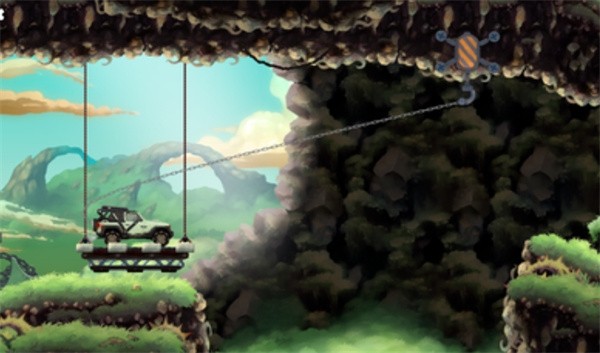 2、绞盘系统是游戏核心特色,它不仅是一个工具,更是解谜关键,其拉力方向、长度与固定点选择直接影响成败。